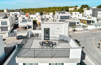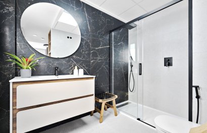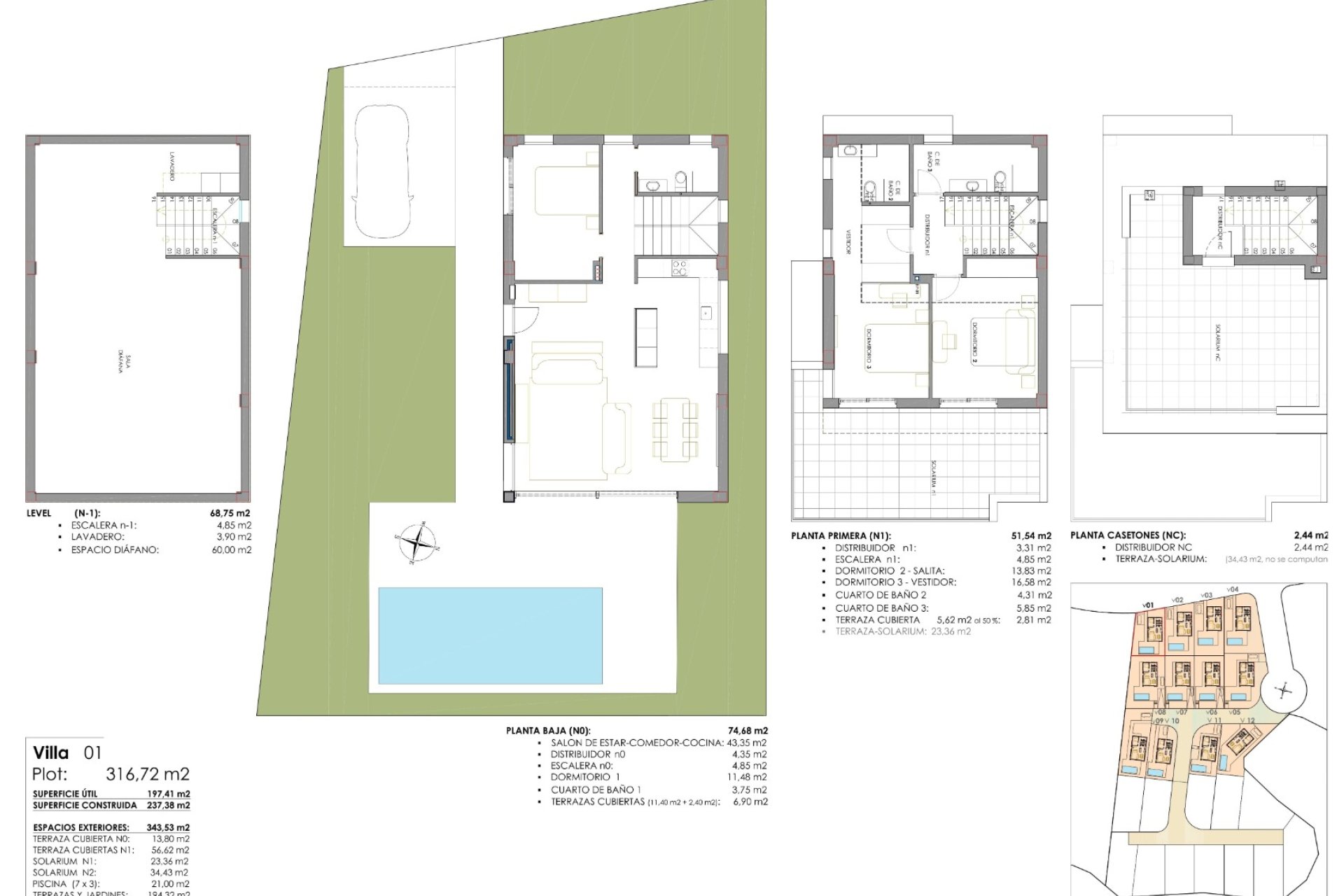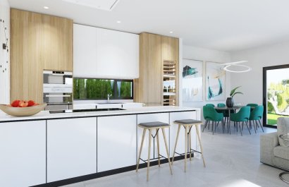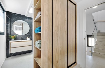 Las villas se suministran con mamparas de ducha y suelo radiante en baños, sistema de aerotermia para agua caliente, electrodomésticos, aire acondicionado instalado por conductos y puerta de acceso motorizada al aparcamiento.
