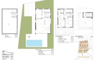 La villa estándar tiene 126 m2 construidos distribuidos en dos plantas y se levanta sobre parcelas de 304 a 472 m2. La planta baja consta de un amplio y luminoso salón con cocina abierta, un amplio dormitorio con armario empotrado y un baño. Desde el salón y el dormitorio se tiene acceso directo al jardín y a la zona de la piscina.