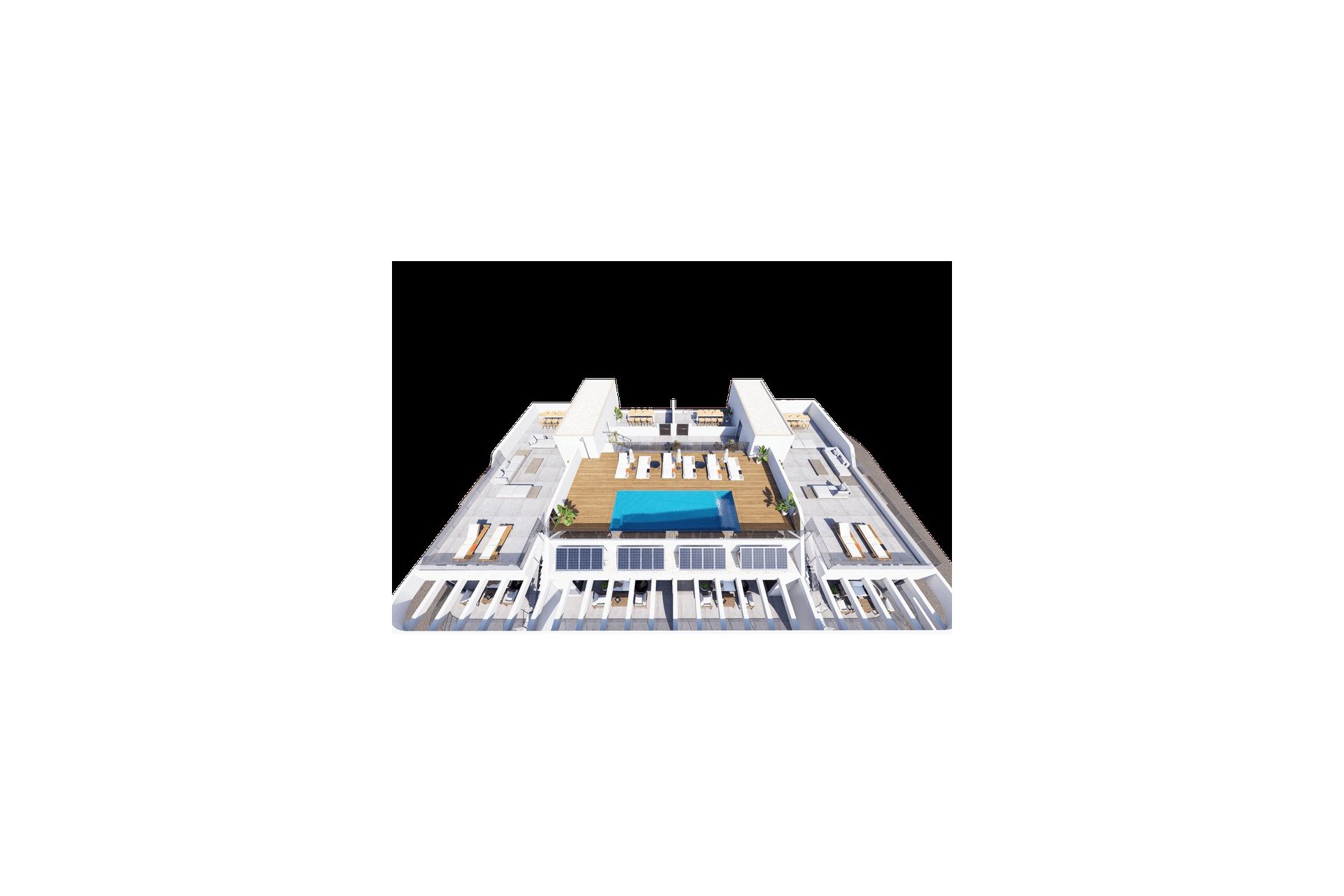 Los apartamentos han sido diseñados para ofrecer el máximo confort, con espacios modernos y funcionales. Cuentan con un amplio salón-comedor, cocina de concepto abierto totalmente equipada y detalles exclusivos como una elegante seating window para disfrutar de las vistas. Cada vivienda dispone de tres dormitorios y dos baños, acabados con materiales de primera calidad, así como acceso a una espectacular zona común que incluye piscina en la azotea, ideal para relajarse y disfrutar del entorno. Las viviendas cuentan con trastero y zona de aparcamiento.