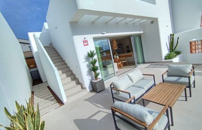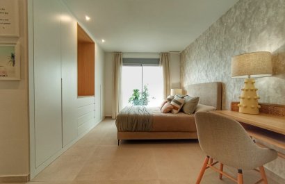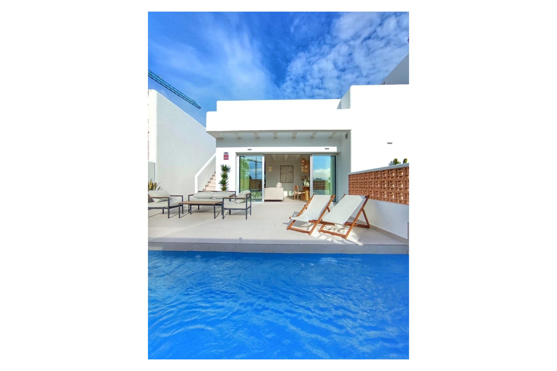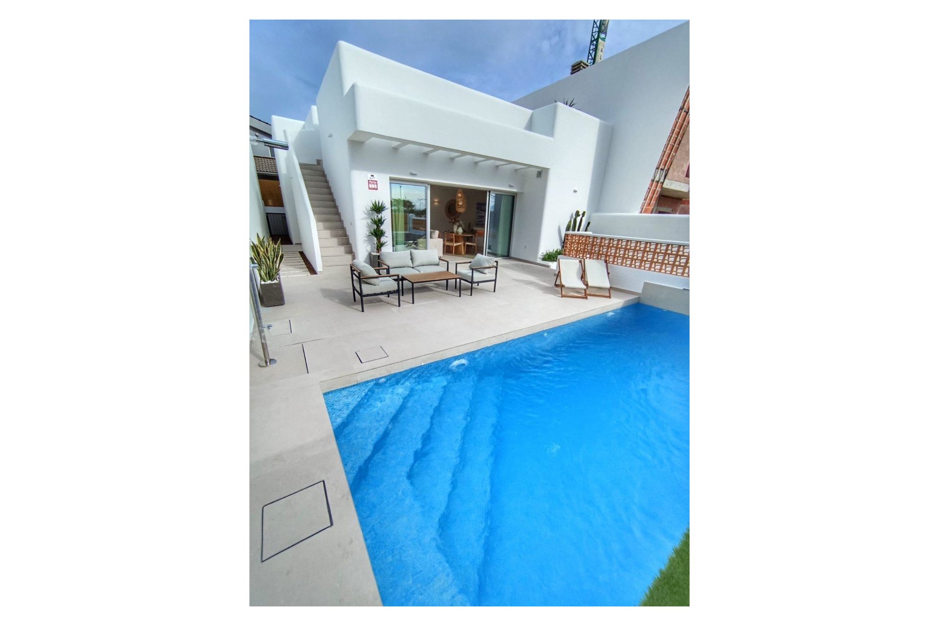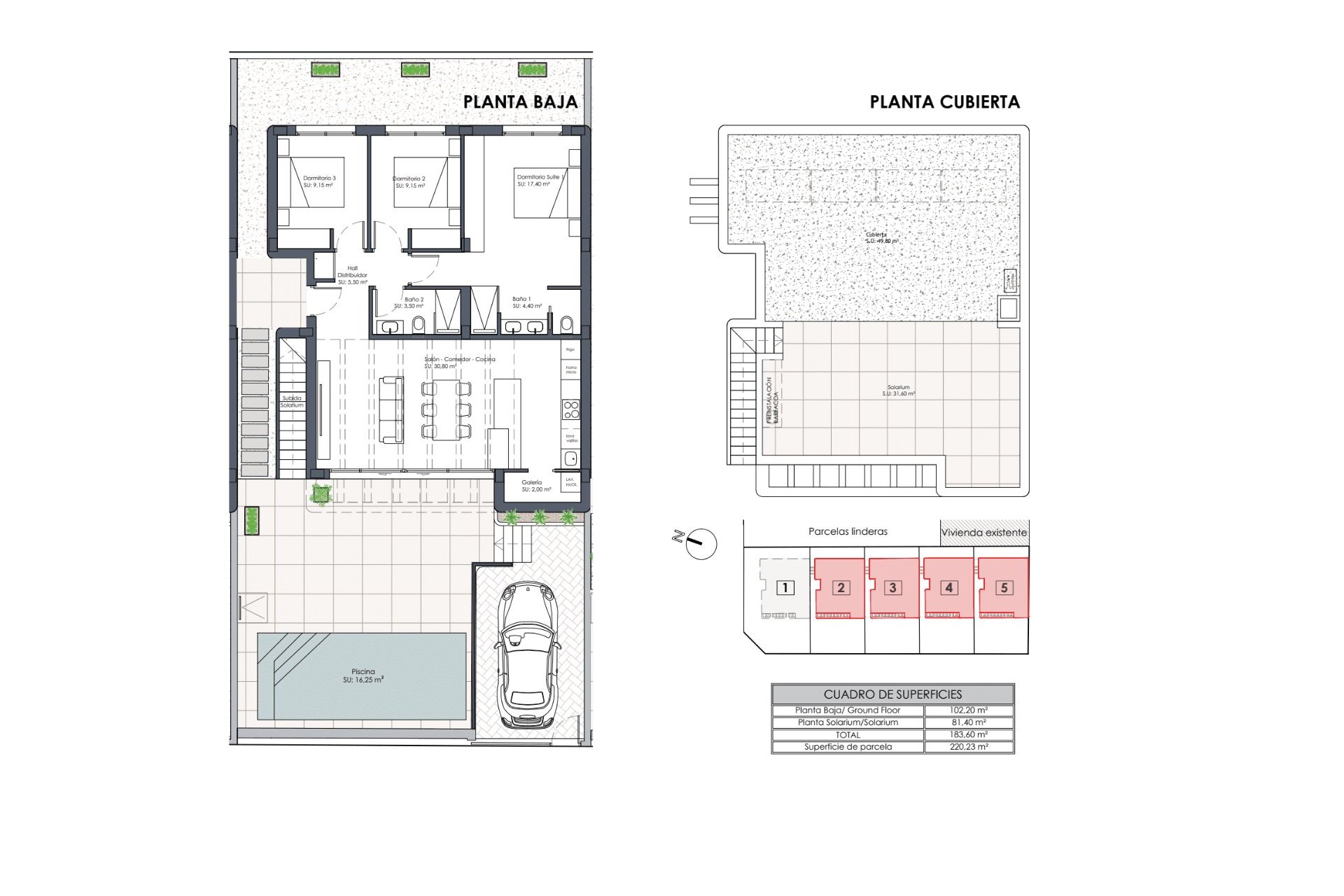 Las viviendas han sido diseñados para ofrecer el máximo confort, con espacios modernos y funcionales. Cuentan con un amplio salón-comedor, cocina de concepto abierto totalmente equipada y detalles exclusivos como una elegante seating window con acceso a zona exterior, con piscina privada y jardín. Cada vivienda dispone de tres dormitorios y dos baños, acabados con materiales de primera calidad, así como acceso exterior a la planta de arriba, donde se encuentra el solárium con cocina de verano ideal para relajarse y disfrutar del entorno. Las viviendas cuentan con zona de aparcamiento.