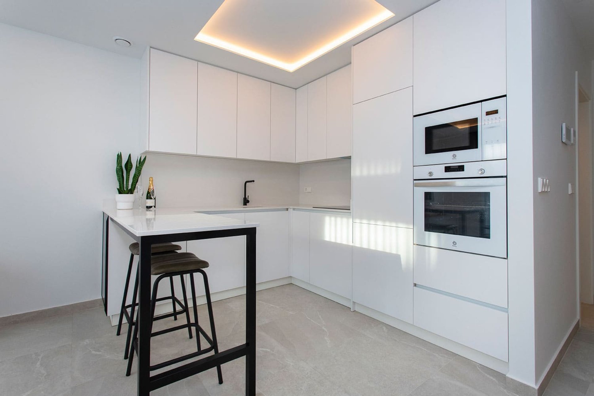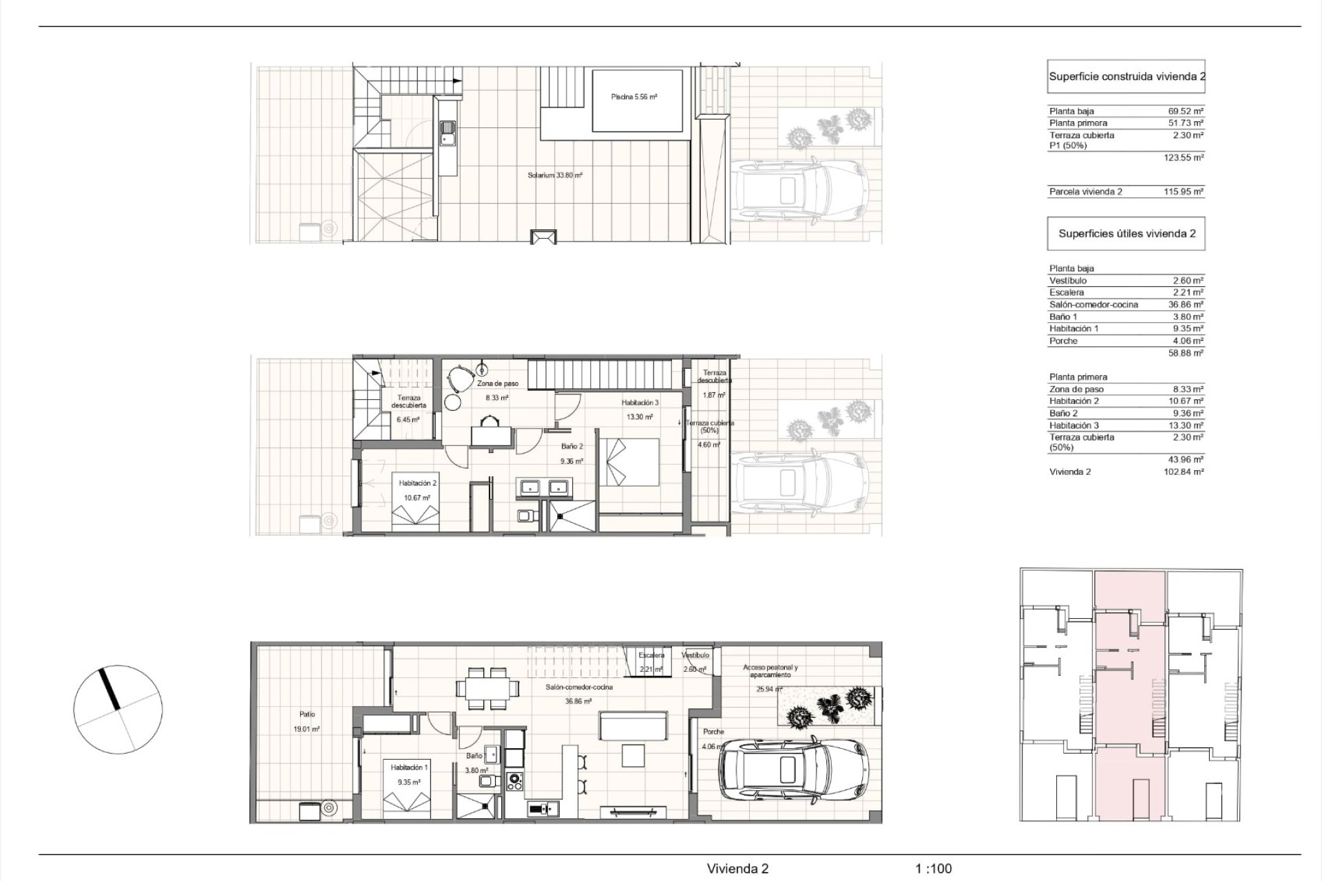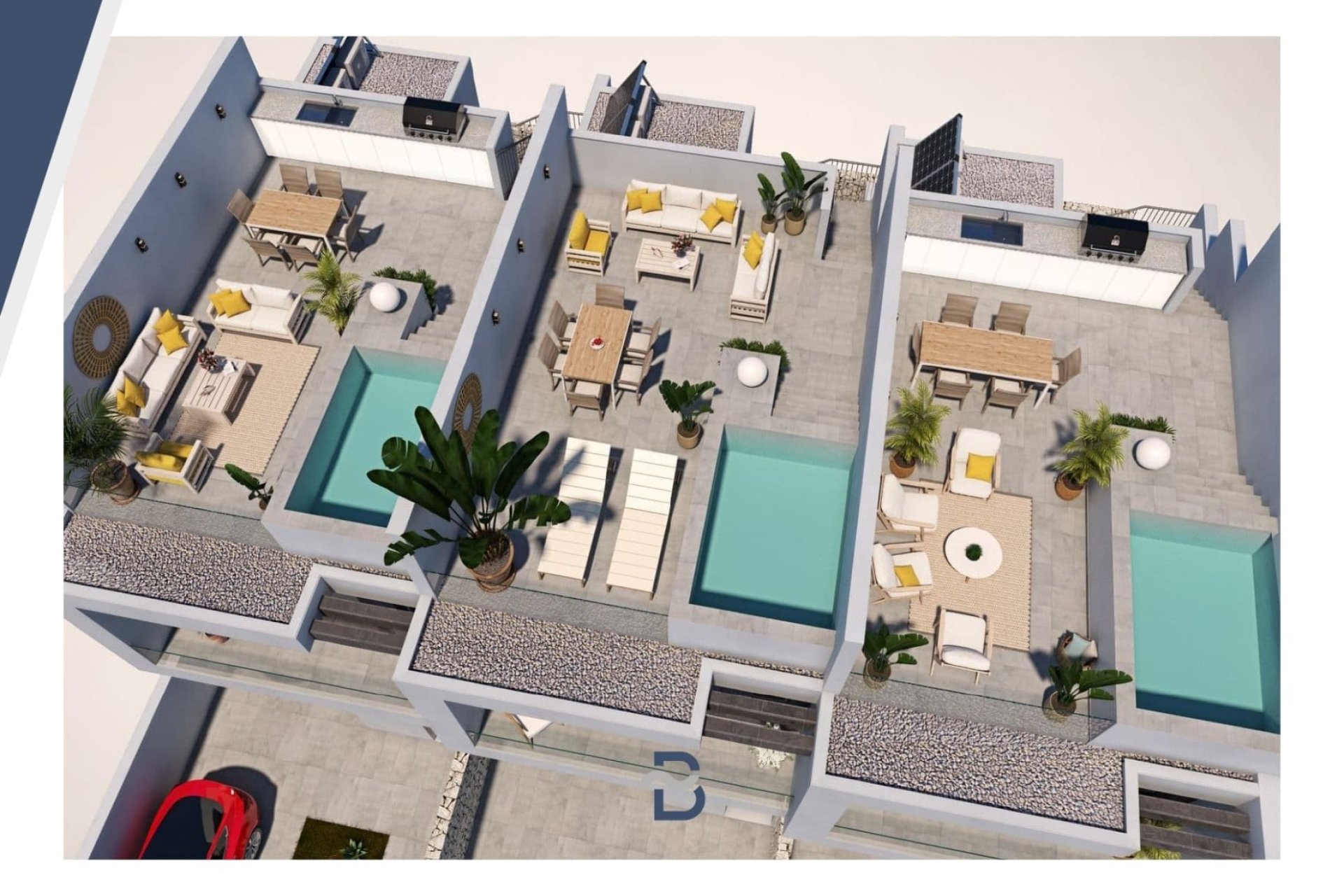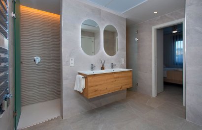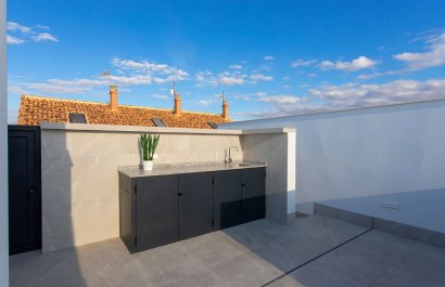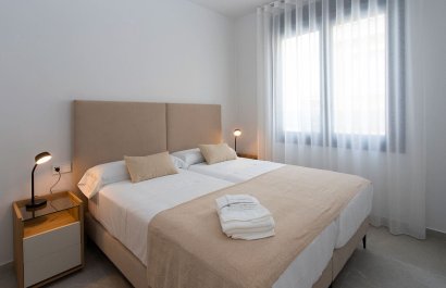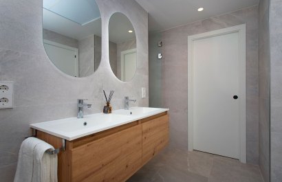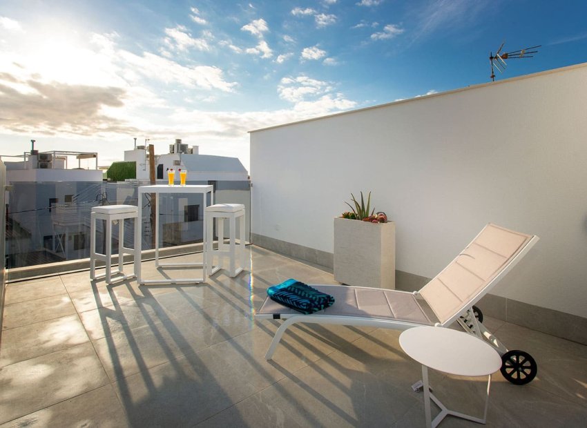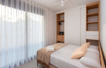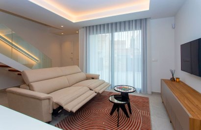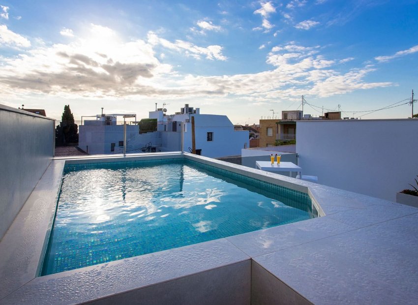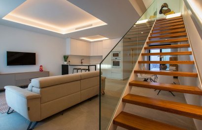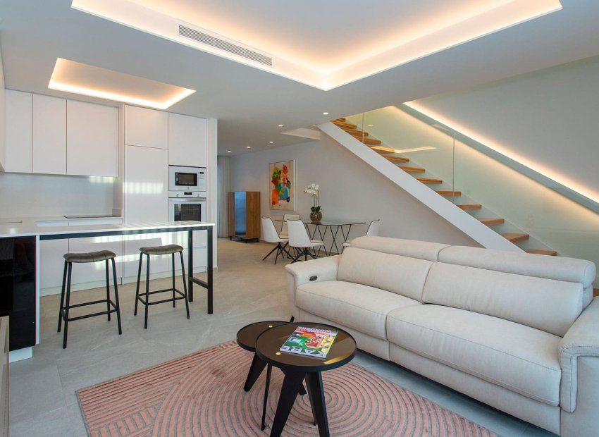 Vivienda tipo dúplex destaca por su diseño exterior, una combinación de líneas puras y elementos revestidos, que le otorgan un estilo único, moderno y elegante a esta vivienda a pie de playa. Con orientación sureste y situada en una zona residencial consolidada, la convierte en una vivienda ideal para disfrutar de la vida mediterránea. La distribución interior merece una especial atención, detalles que se han pensado cuidadosamente para proporcionar el máximo confort a sus propietarios y potenciar la estética del espacio. Por ello, en la planta principal, se ha creado un espacio “abierto y ligero” donde salón, comedor y cocina se conectan a través de unas puertas correderas aun patio interior para uso y disfrute al aire libre todo el año. La sencillez es la clave de esta colección. De nuevo, con una simple estructura metálica en color blanco y barandilla de cristal, la escalera se convierte en el complemento perfecto para mantener la luminosidad y amplitud desde la entrada. Completan la distribución de esta planta una habitación con acceso al patio y baño Jack and Jill. Este dúplex todavía aguarda una parte muy especial: su piso de arriba. Al subir la escalera se llega a un espacio chill out, antesala del solárium: Un coqueto rincón con zona de lectura y escritorio. Este descansillo multifuncional da paso a dos amplias habitaciones, una de ellas con terraza privada y ambas comparten un elegante baño Jack Jill de ensueño con sus 10m2 de superficie. La terraza/solárium es sin duda la joya de la casa, está diseñada para lograr un encadenamiento de espacios en los que poder contemplar las vistas al mar, comer al aire libre, tomar el sol o disfrutar de un refrescante baño en la piscina.