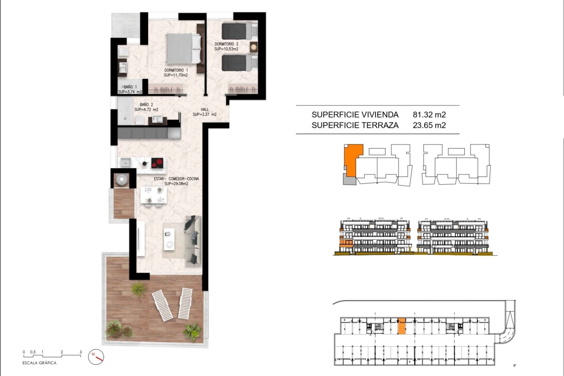 120 apartamentos de 2 dormitorios y 2 baños