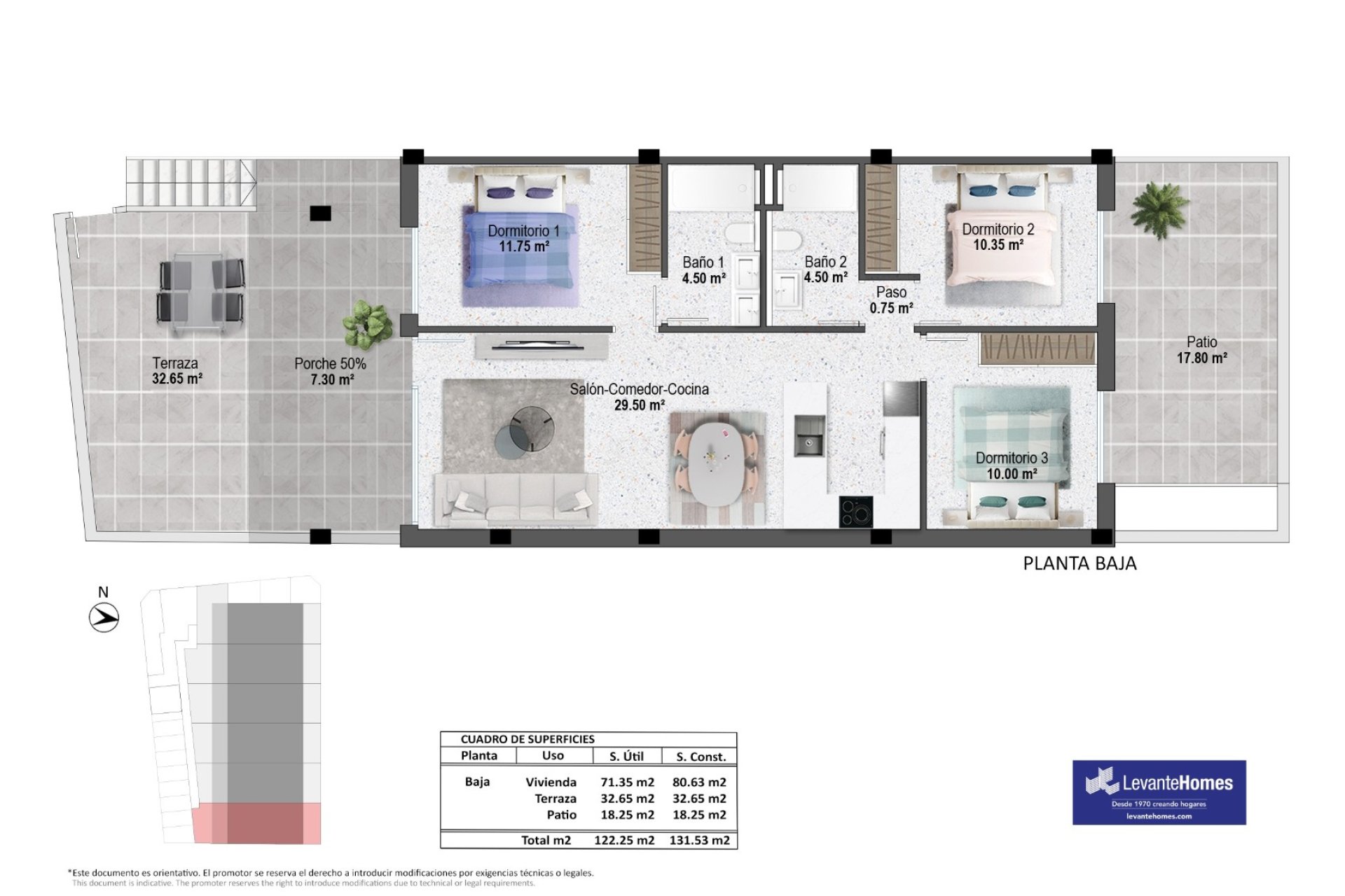 Nuevo y exclusivo proyecto residencial en Pilar de la Horadada, compuesto por 12 modernos apartamentos de 2 ó 3 dormitorios y 2 baños. Los apartamentos de la planta baja tienen amplias terrazas delanteras y traseras, mientras que los áticos ofrecen terrazas privadas en la azotea con cocina de verano, pérgola y aseo privado, perfectas para disfrutar del sol todo el día. Todos los apartamentos tienen zonas de estar y cocina de planta abierta e incluyen electrodomésticos, aire acondicionado, iluminación LED y calefacción por suelo radiante en los baños. El proyecto también incluye aparcamientos privados y trasteros comunitarios para bicicletas. Las zonas comunes incluyen una gran piscina, piscina infantil, zonas verdes y duchas exteriores.
